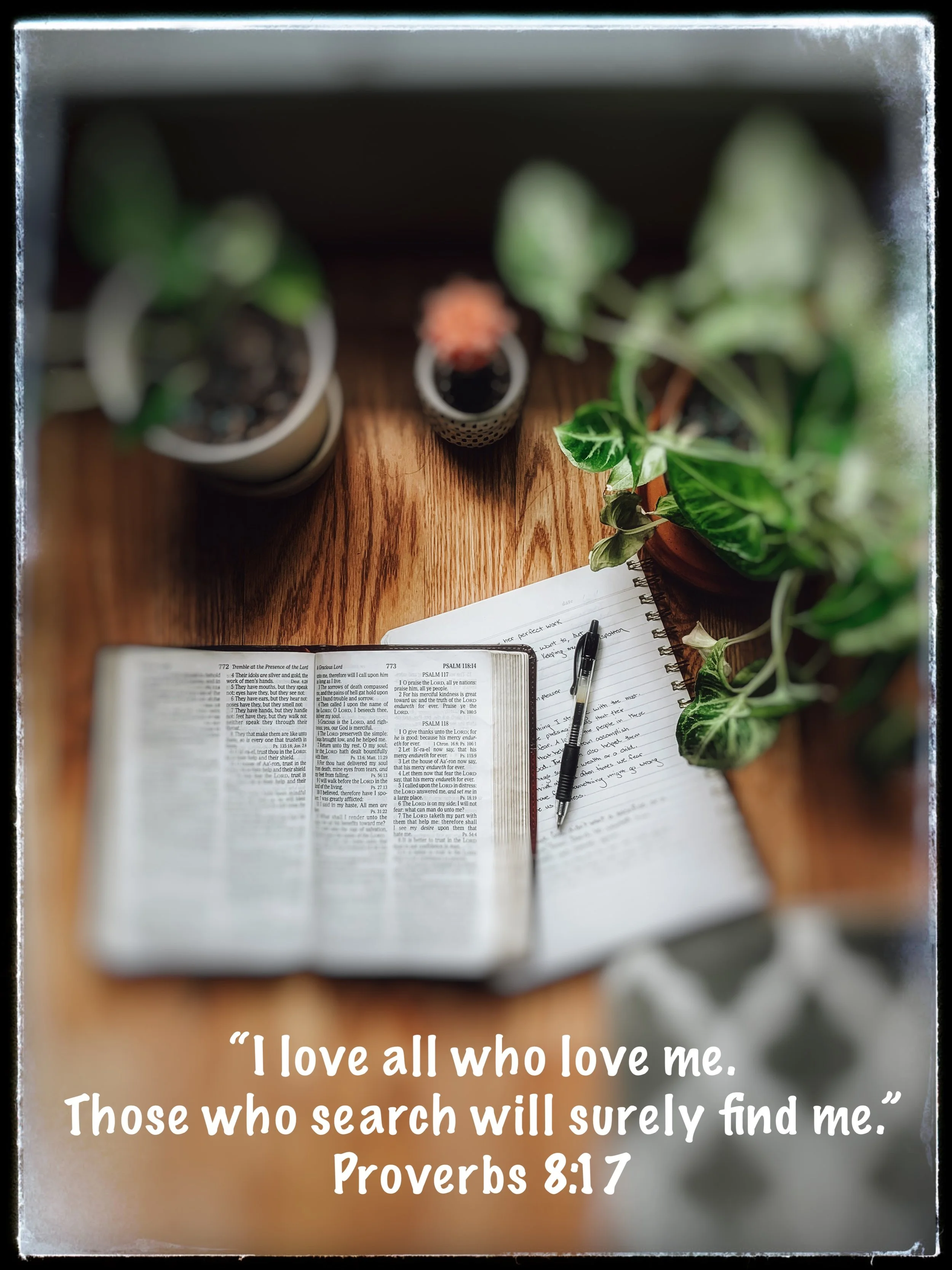 “I love all who love me. Those who search will surely find me.”—Proverbs 8:17(NLT)